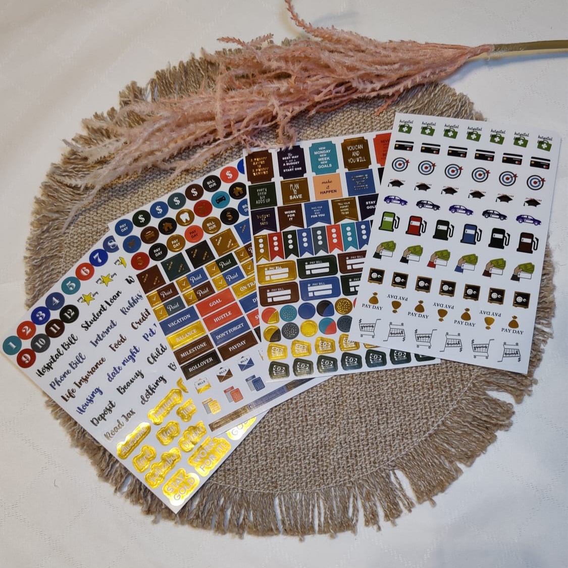 Hauskat rahateemaiset tarrat piristämään arkea ja tuomaan inspiraatiota esim. kalenteriin. Planner tarrat auttavat pitämään kalenterit ja budjetit järjestyksessä sekä tekemään organisoinnista visuaalista.